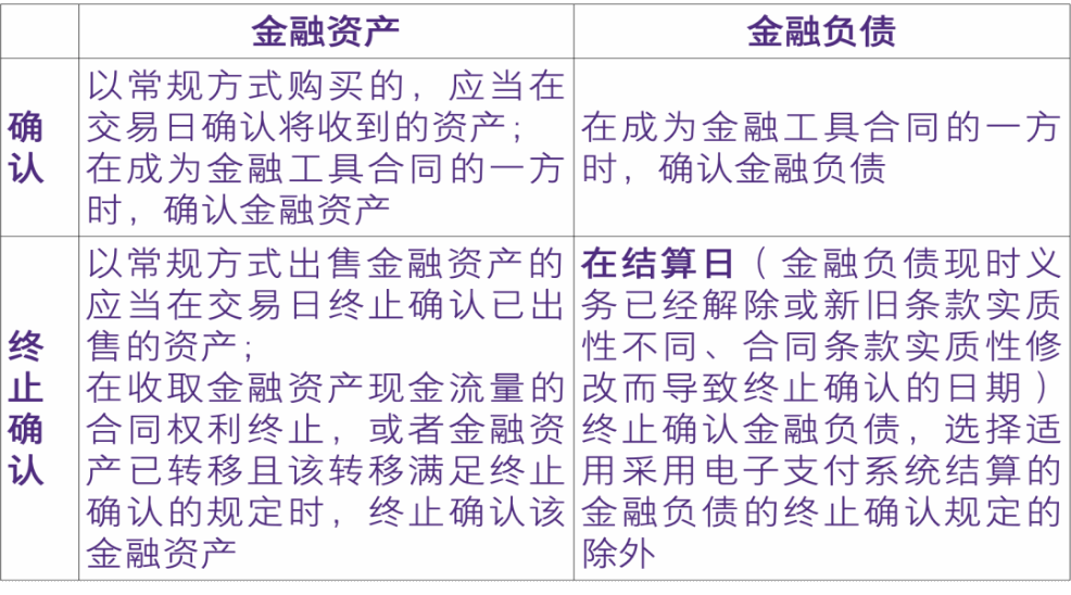 除非适用《企业会计准则第22号——金融工具确认和计量》第十条以常规方式购买或出售金融资产的确认和终止确认规定,企业应当在下列时点对金融资产和金融负债进行确认和终止确认: