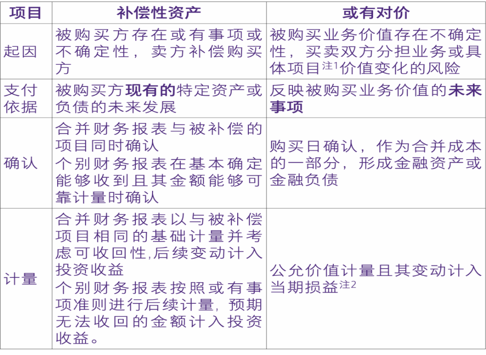 2、补偿性资产与或有对价的区别
